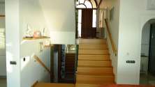 -MERDİVENLER MASİF AHŞAP,KORKULUKLARI TEMPERLİ, AYDINLATMALI CAM